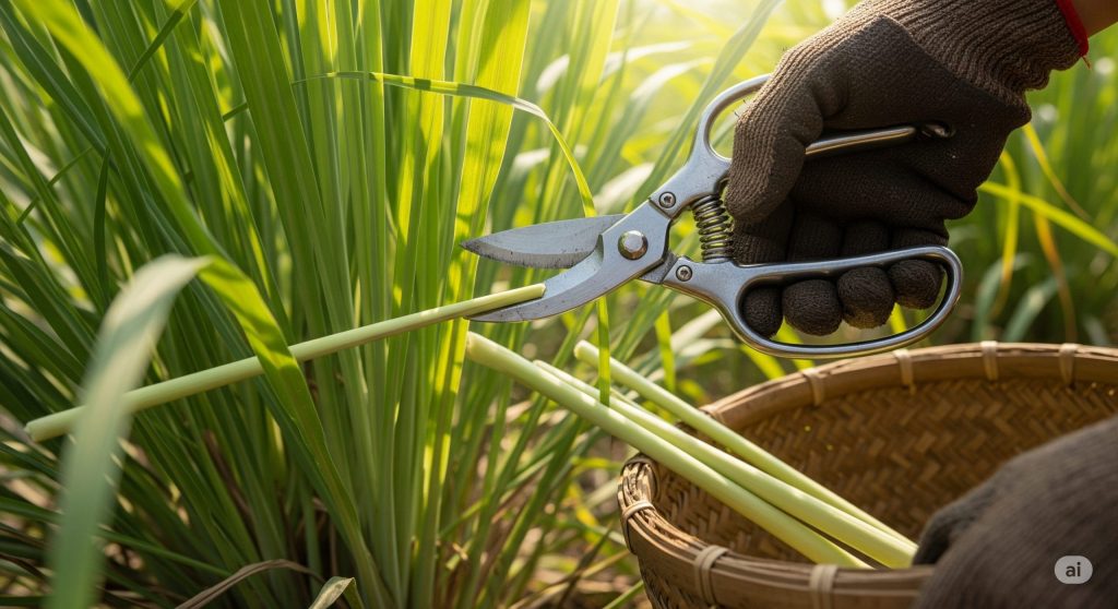 レモングラスは、草丈が30cm以上に育ち、茎が十分に太くなってきたら、いつでも収穫できます。