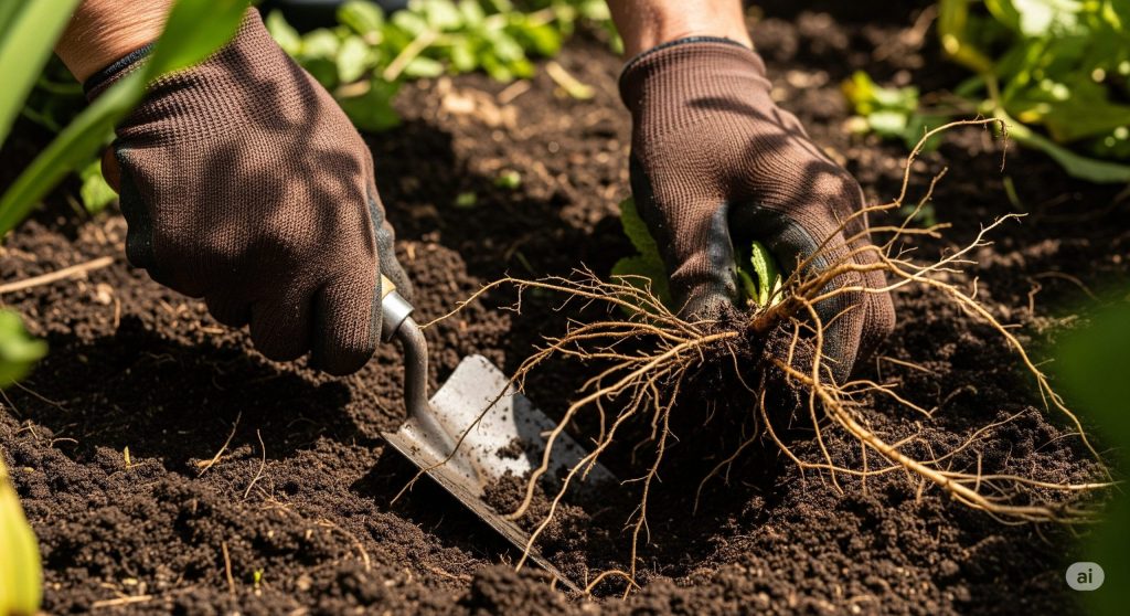 ステップ2:土を掘り返し、地下茎を徹底的に除去