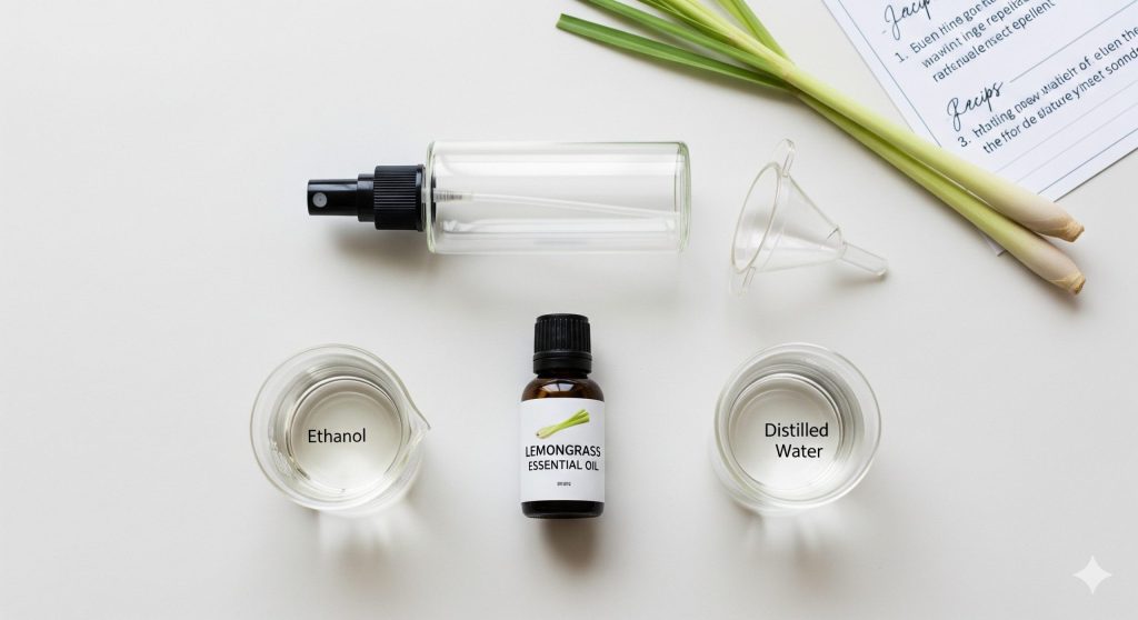 レモングラスの虫除けスプレーは、意外なほど簡単に手作りできます。ここでは、手軽に始められる「エッセンシャルオイル(精油)」を使った作り方をご紹介します。