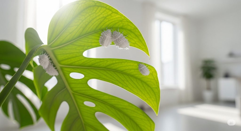 - コナカイガラムシ類: 白い粉や綿で覆われたような見た目が特徴です。比較的動き回ることができ、植物全体に広がります。